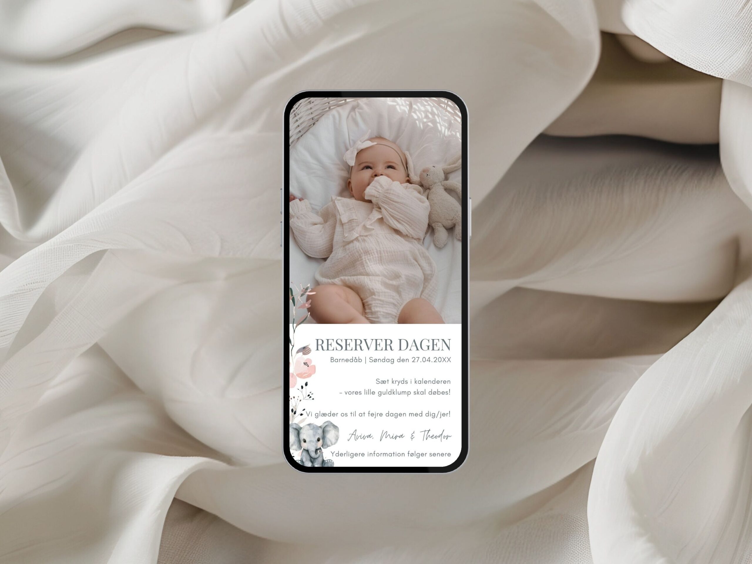 Vores skabeloner giver jer friheden til at skabe et unikt save the date kort, der giver jeres gæster mulighed for at være en del af denne vigtige milepæl. Perfekt til at sætte tonen for barnedåbsfesten allerede fra starten.