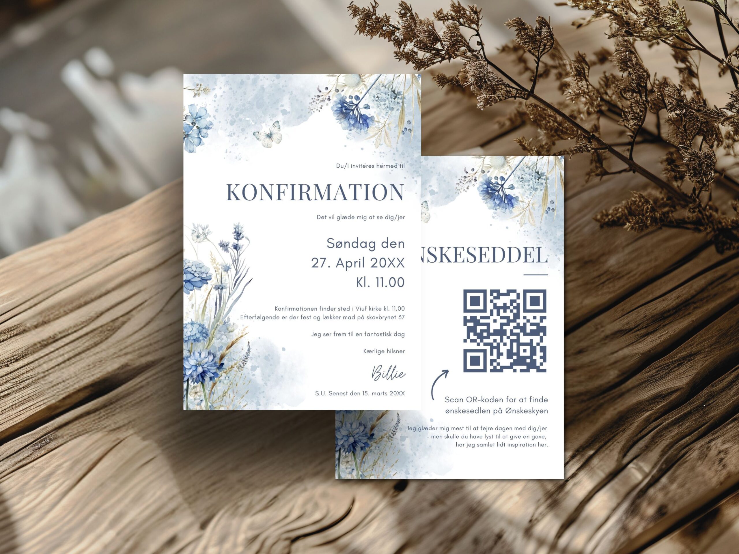 Invitation + ønskeseddel – A5 / 148 x 210 mm
