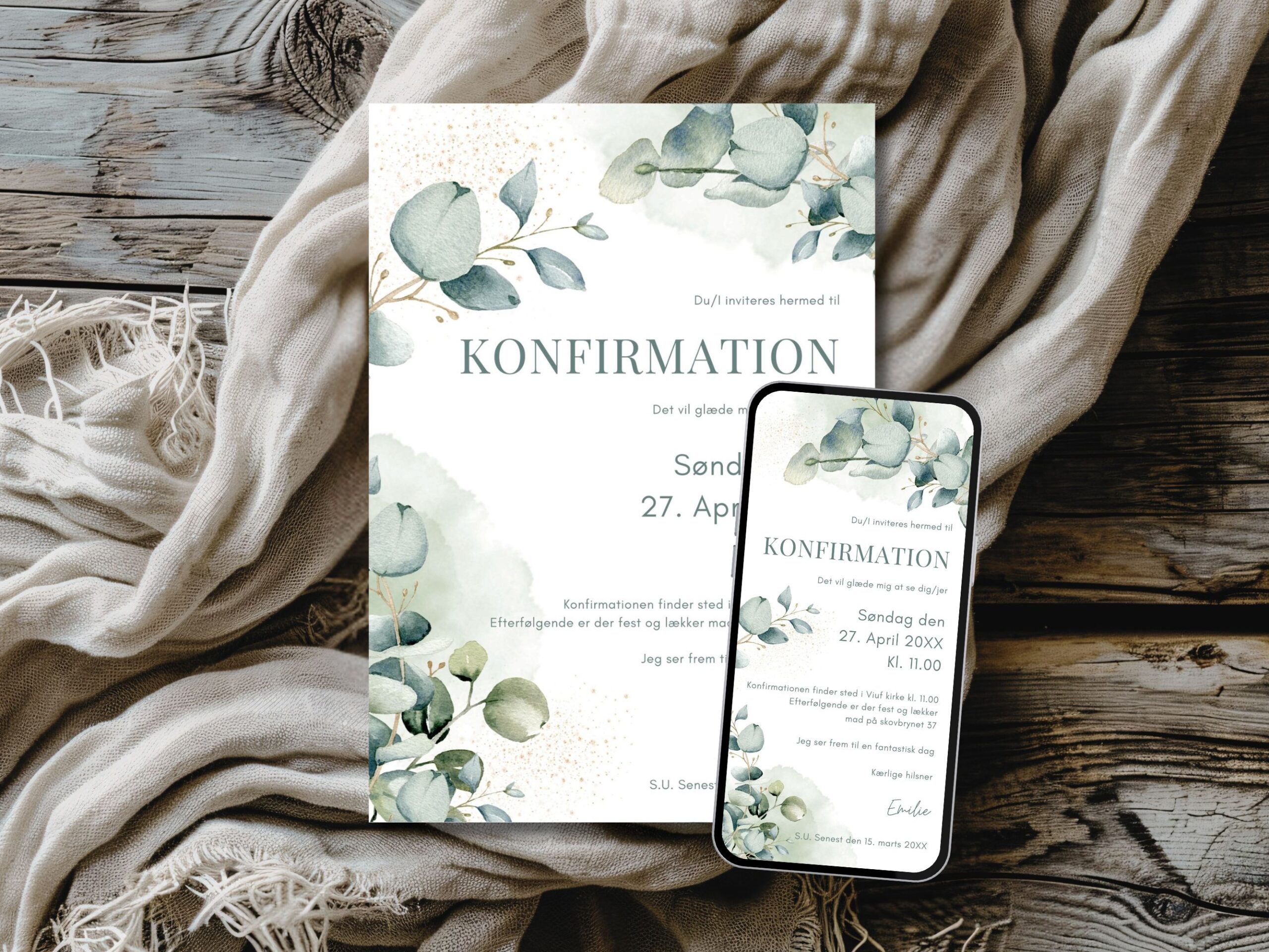 Med vores konfirmationsinvitationer kan du skabe en unik og personlig invitation til jeres store dag – direkte i programmet Canva (den gratis version). Vælg mellem smukke og elegante designs, som du nemt kan redigere i Canva med jeres egen tekst, farver og billeder, så invitationen afspejler både jeres stil og den kommende konfirmands personlighed.