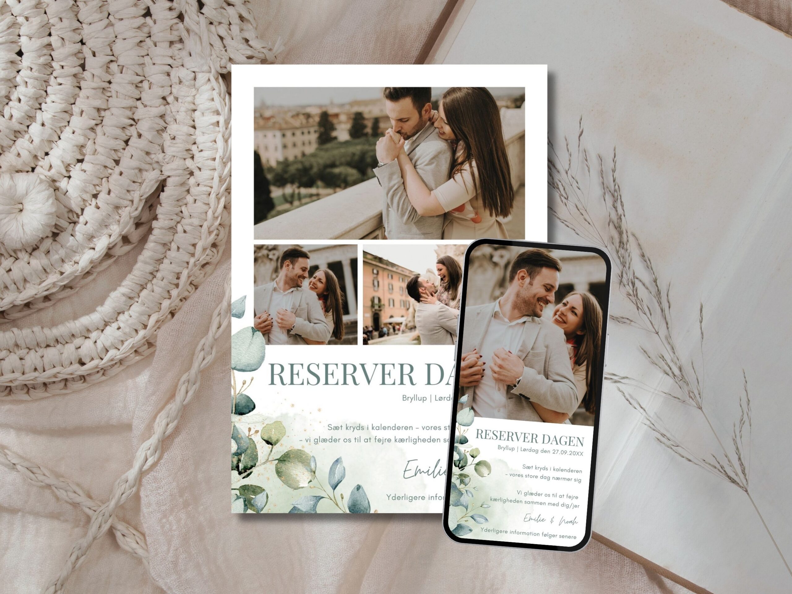 Vil I sikre jer, at gæsterne reserverer datoen til det kommende bryllup? Med vores redigerbare save the date kort til brylluppet kan I nemt skabe et personligt kort, der afspejler den store dag. Vælg mellem stilfulde og moderne designs, som I kan tilpasse med jeres egen tekst, billeder og farver, direkte inde i programmet Canva (den gratis version).