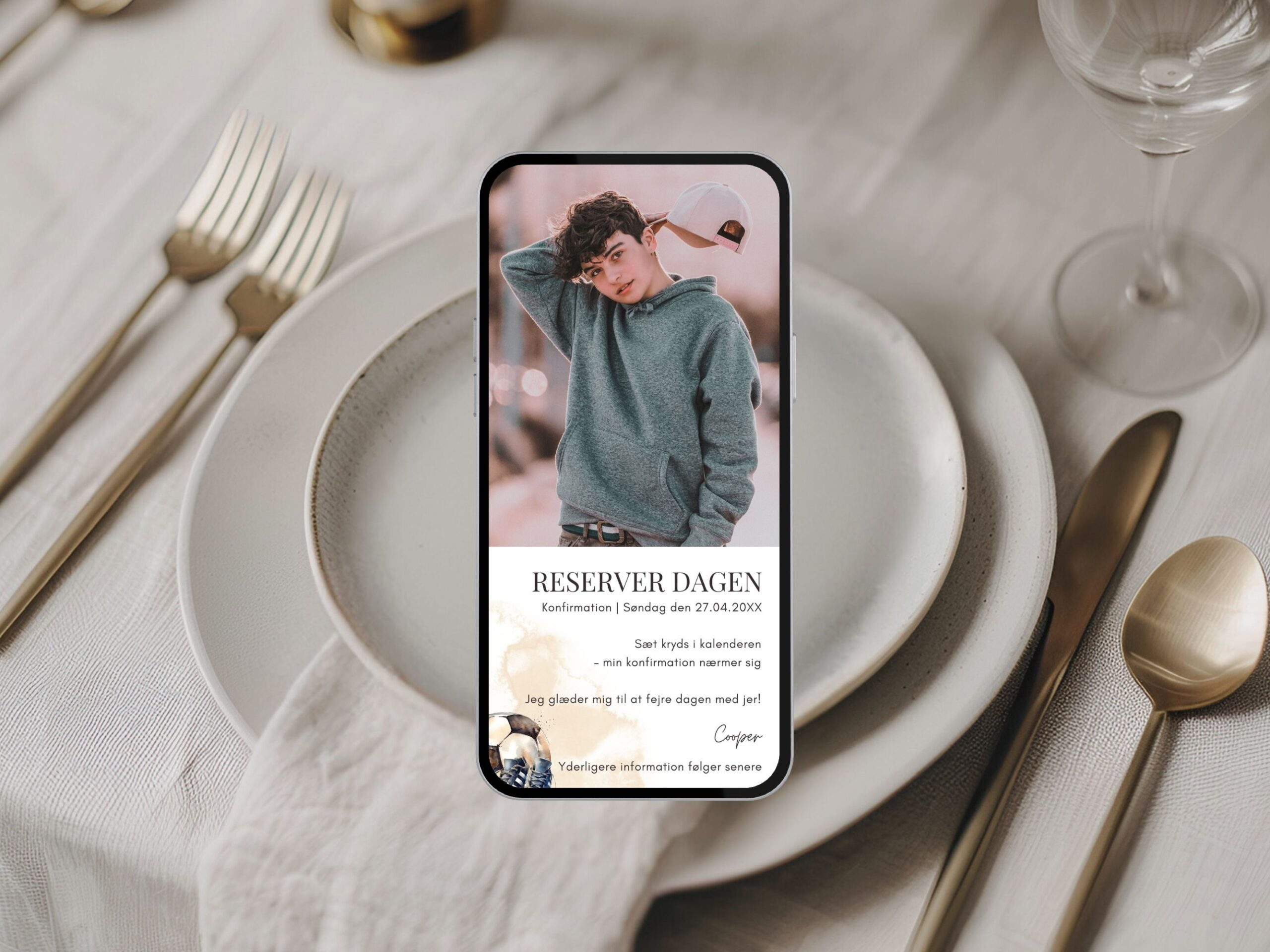 Fodbold | Save the date kort konfirmation digital