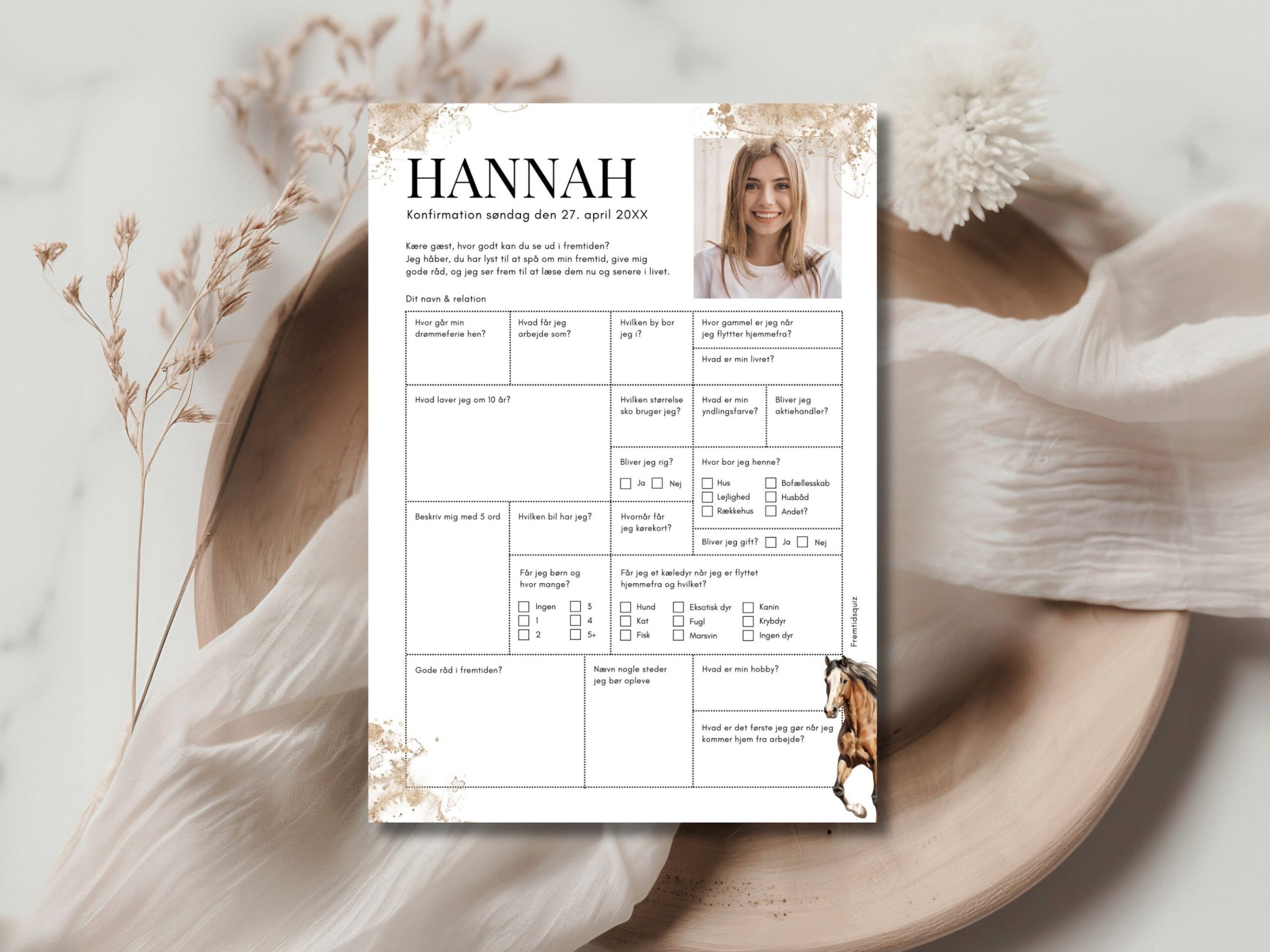 Skab smil og god stemning med en underholdende fremtidsquiz til konfirmationen! Lad gæsterne spå om konfirmandens fremtid og gætte på sjove spørgsmål som fremtidige drømmejob, rejsemål, antal børn eller hvilken hobby, der bliver en stor passion. Quizzen er den perfekte aktivitet til at samle gæsterne og skabe minder til den store dag.