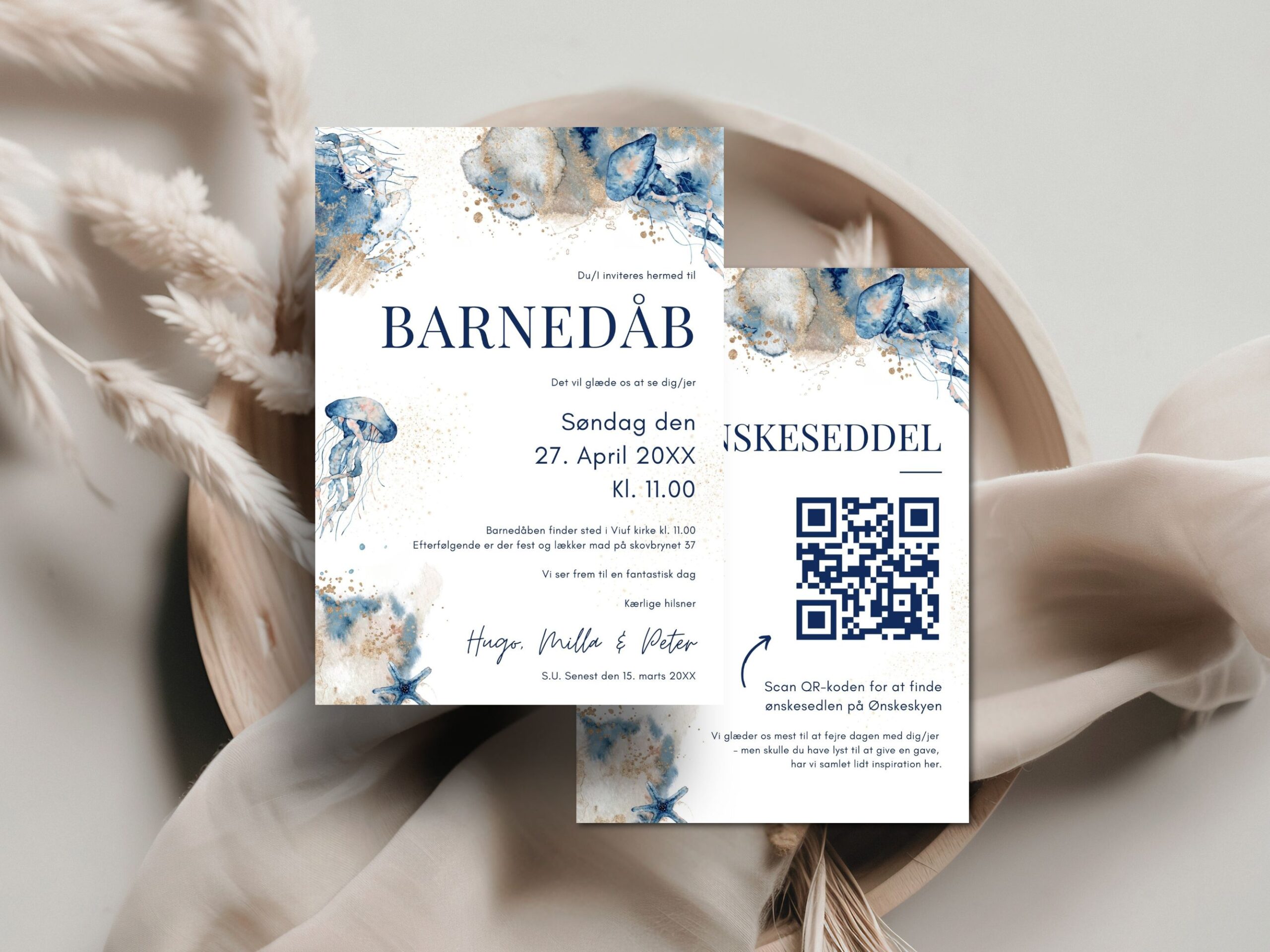Barnedåbsinvitation inkl. ønskeseddel