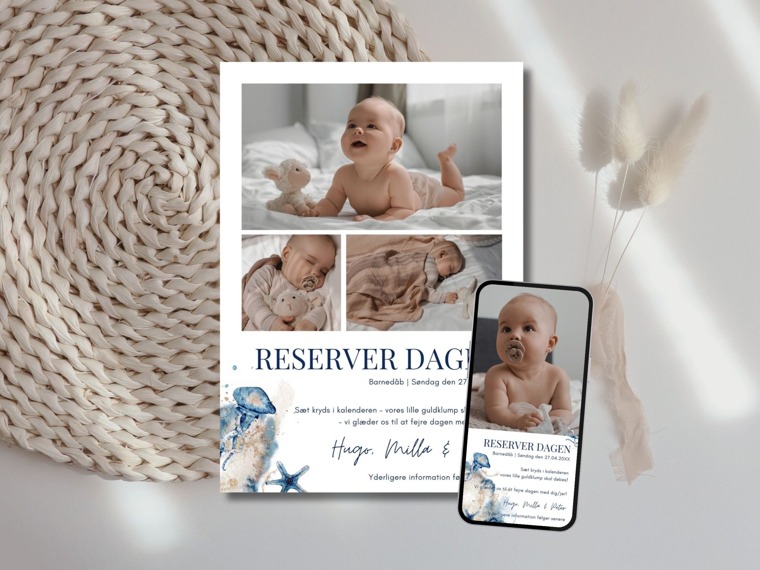 Hugo | Save the date kort barnedåb kombi