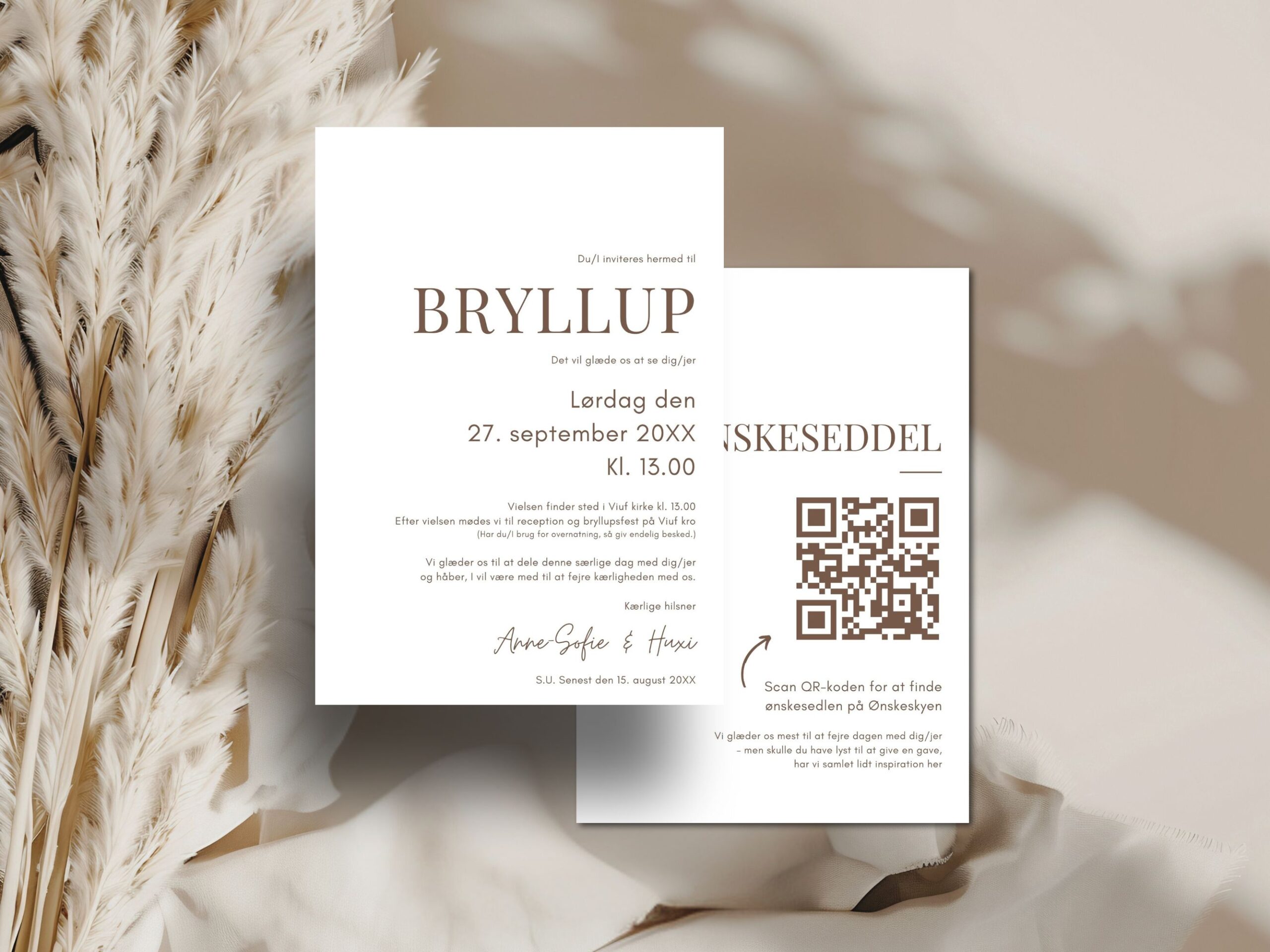 Skabelonerne giver jer fuld kreativ frihed til at tilpasse bryllupsinvitationerne, så de bliver helt unikke. I kan endda tilføje små personlige elementer, der betyder noget for jer som par. Dette gør det muligt at skabe en invitation, som ikke bare informerer gæsterne om begivenheden, men også formidler de følelser og den kærlighed, I ønsker at dele med dem.