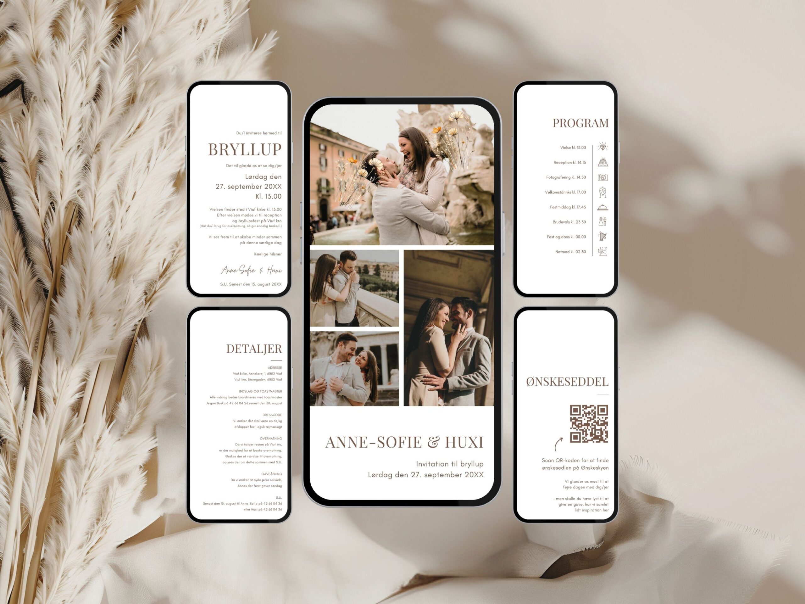 Digital invitation inkl. 5 sider + ark med bryllupsikoner – passer til mobiltelefon
