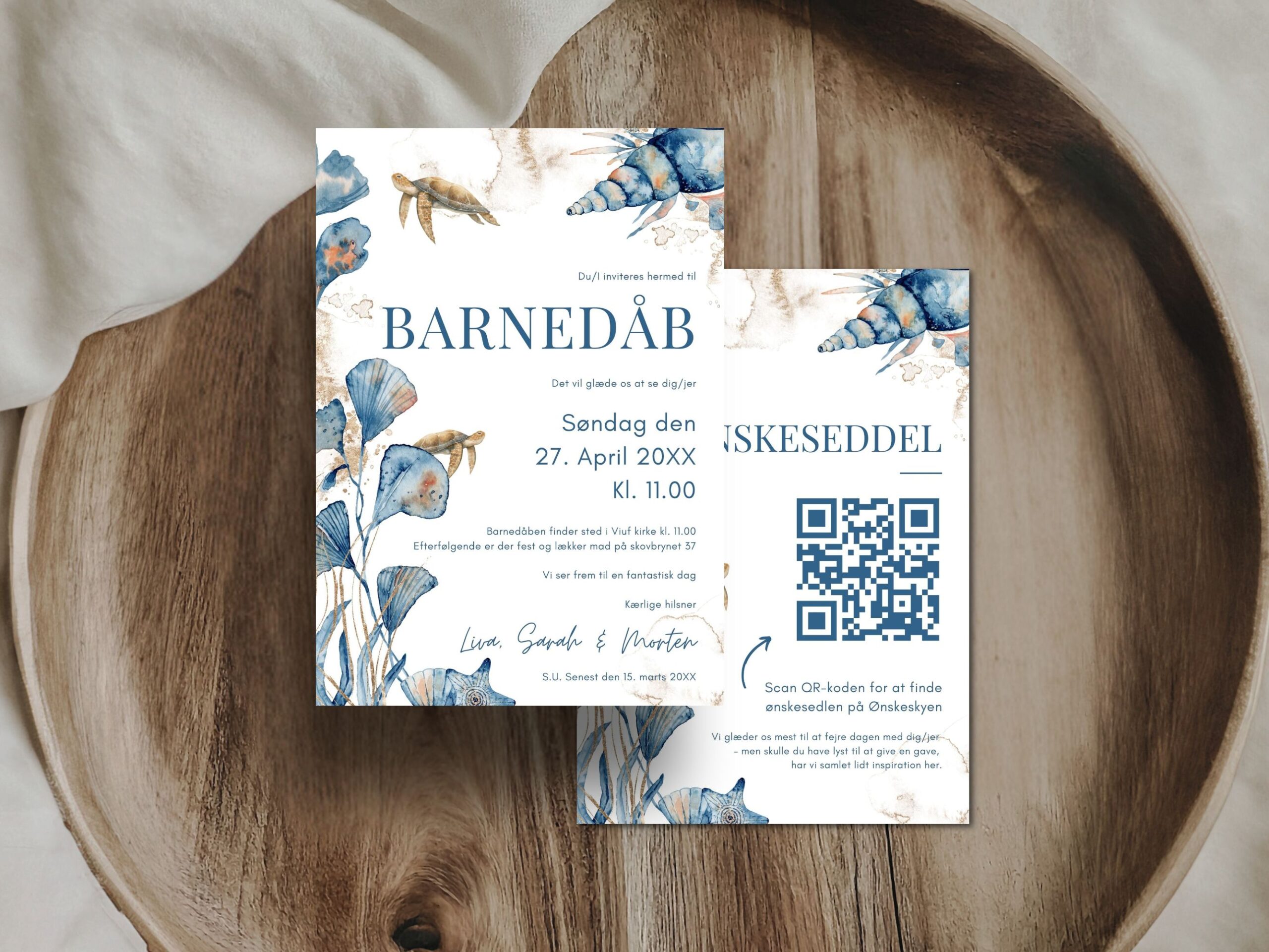Barnedåbsinvitation inkl. ønskeseddel