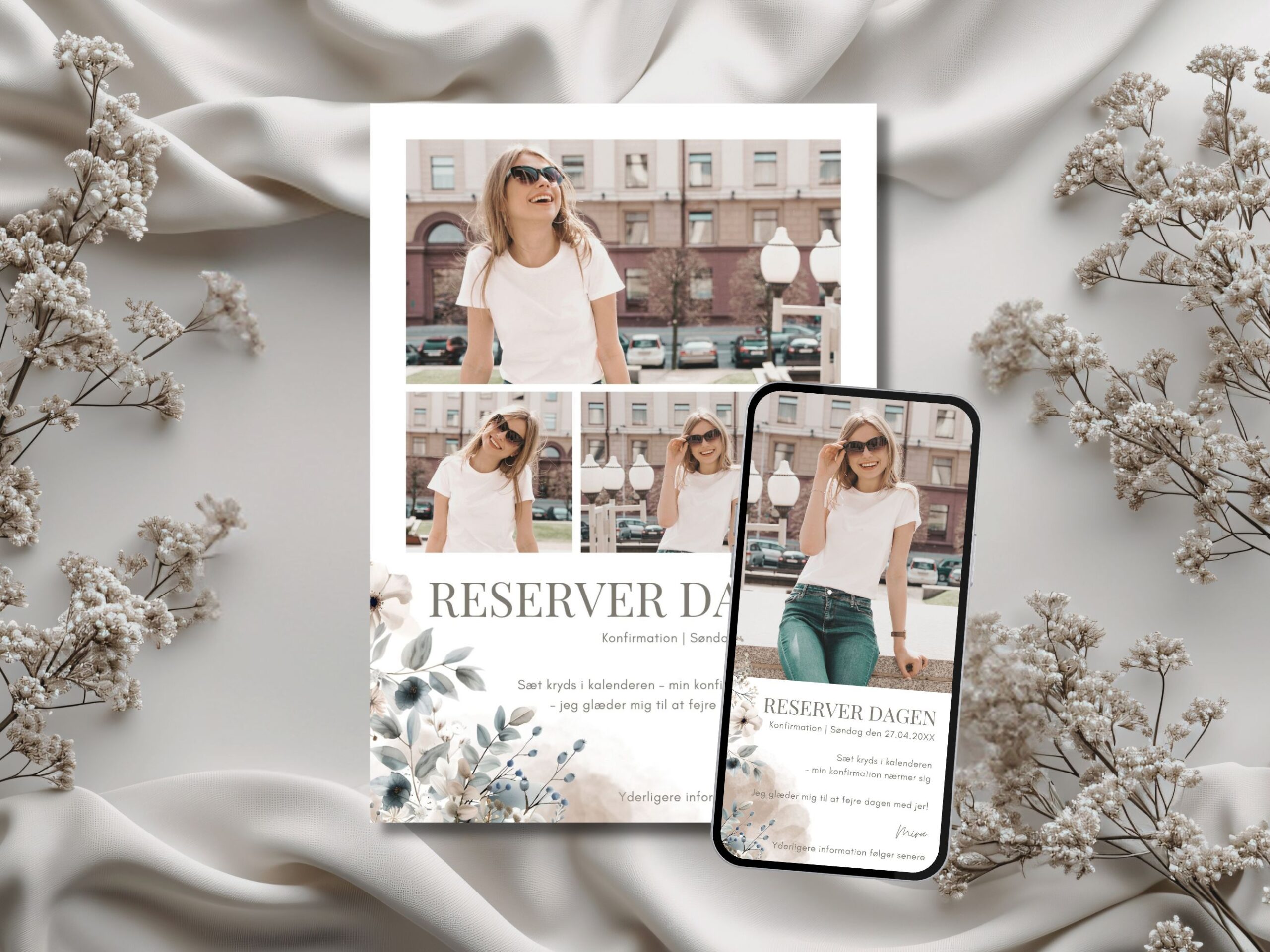 Vores skabeloner giver jer friheden til at skabe et unikt save the date kort, der giver jeres gæster mulighed for at være en del af denne vigtige milepæl. Perfekt til at sætte tonen for konfirmationsfesten allerede fra starten.