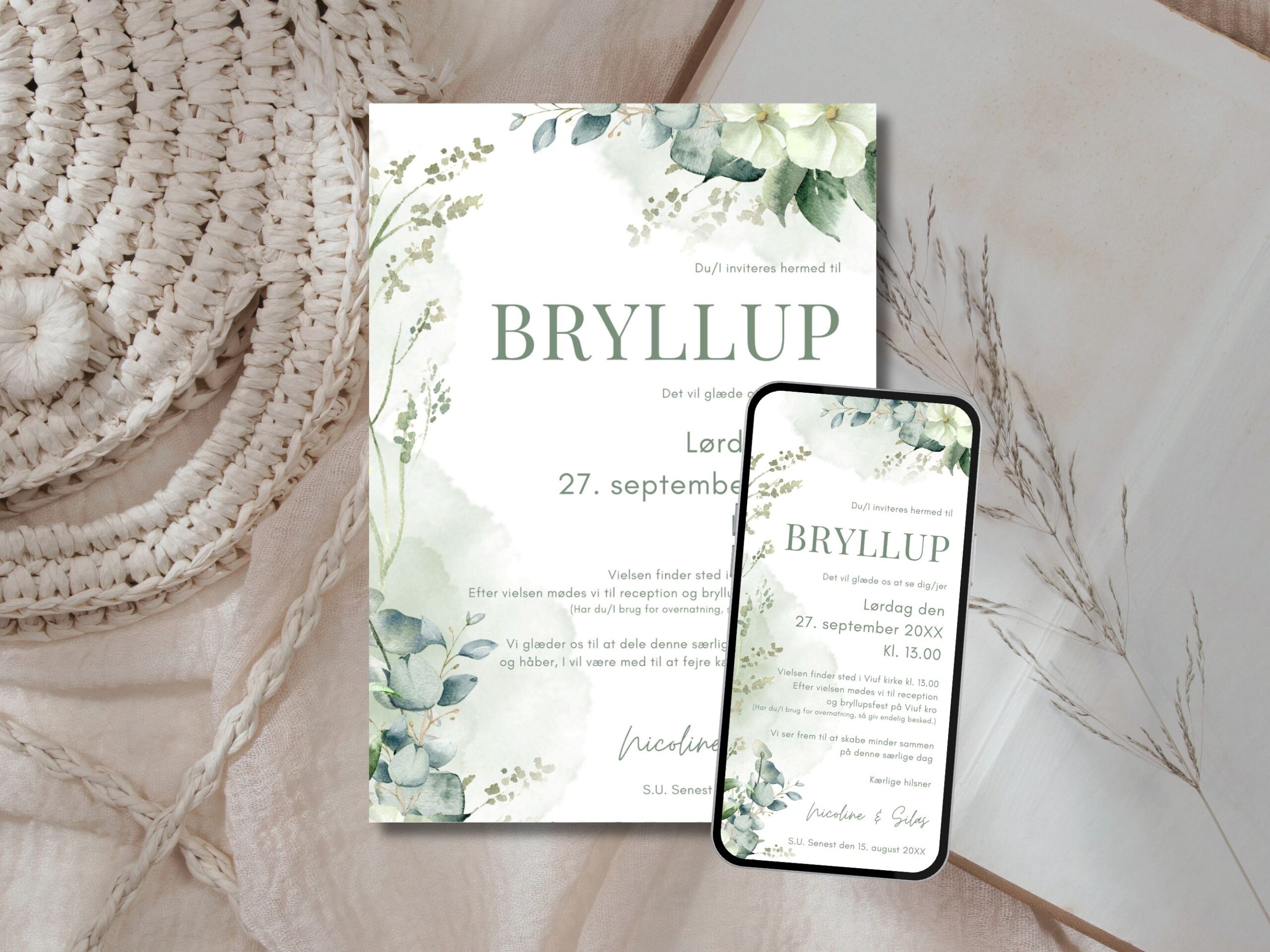 Invitation til bryllup – Almindelig kort + digital version