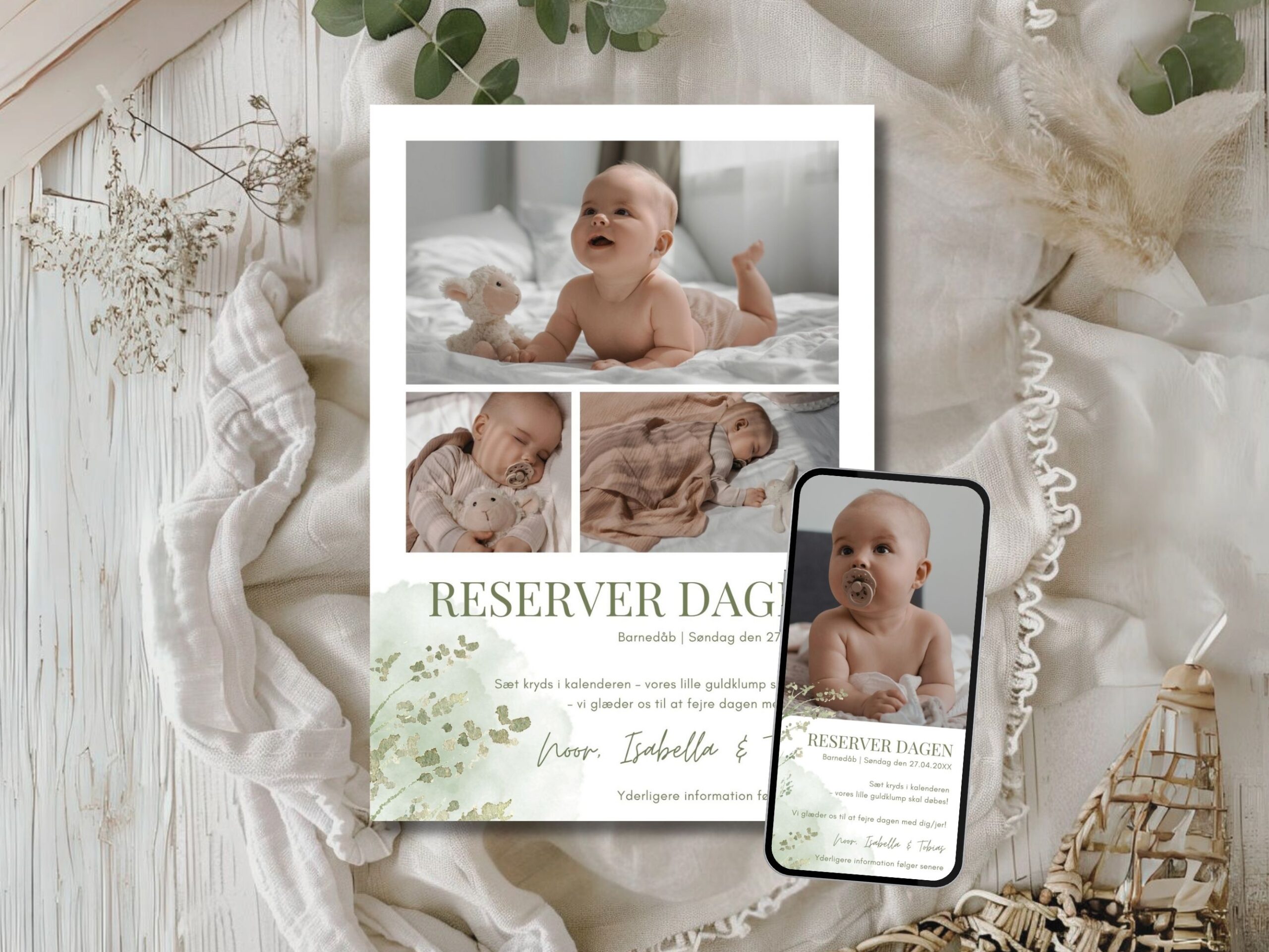 Noor | Save the date kort barnedåb kombi