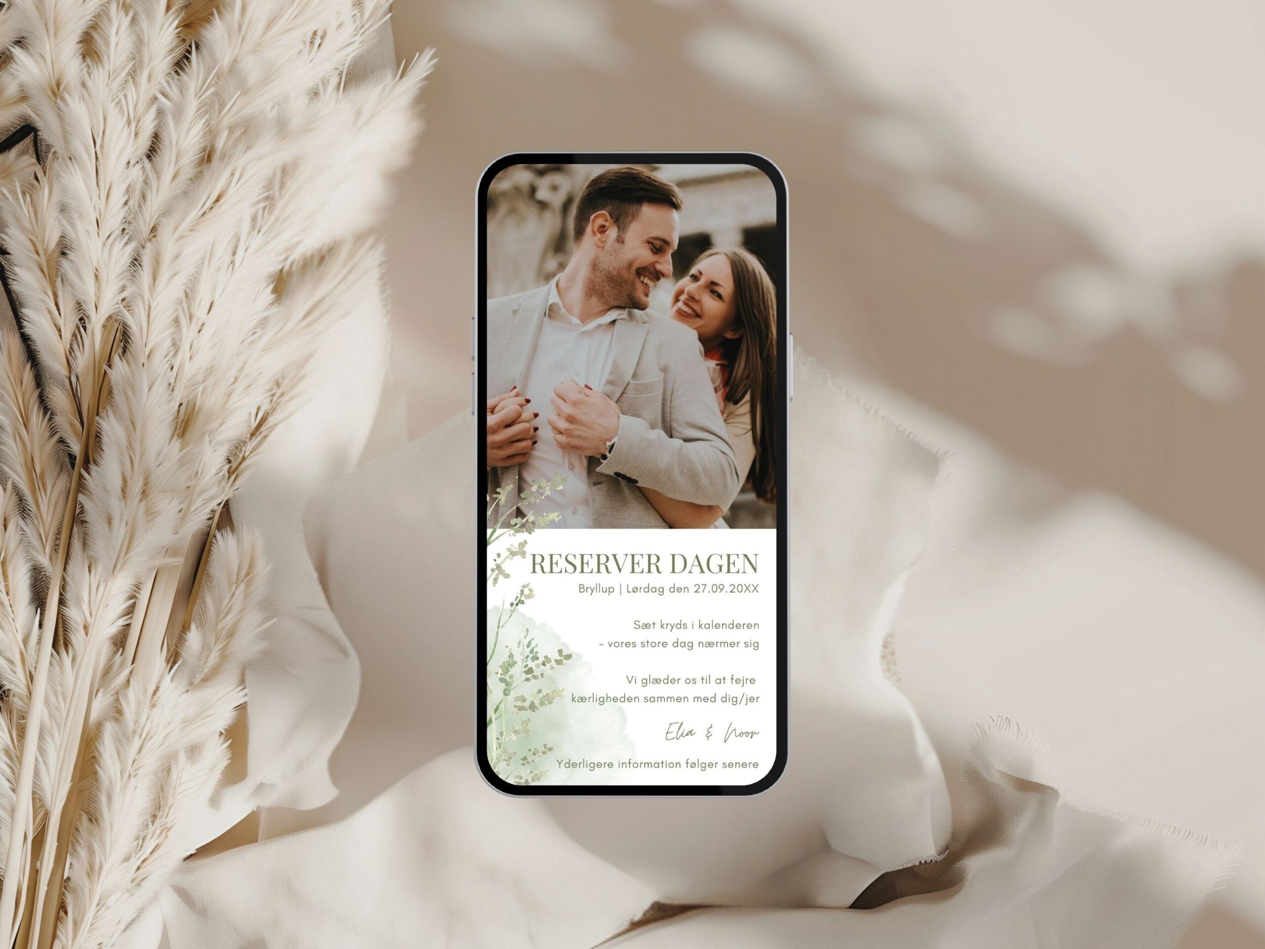 Vores skabeloner giver jer friheden til at skabe et unikt save the date kort, der giver jeres gæster mulighed for at være en del af denne vigtige milepæl. Perfekt til at sætte tonen for bryllupsfesten allerede fra starten.