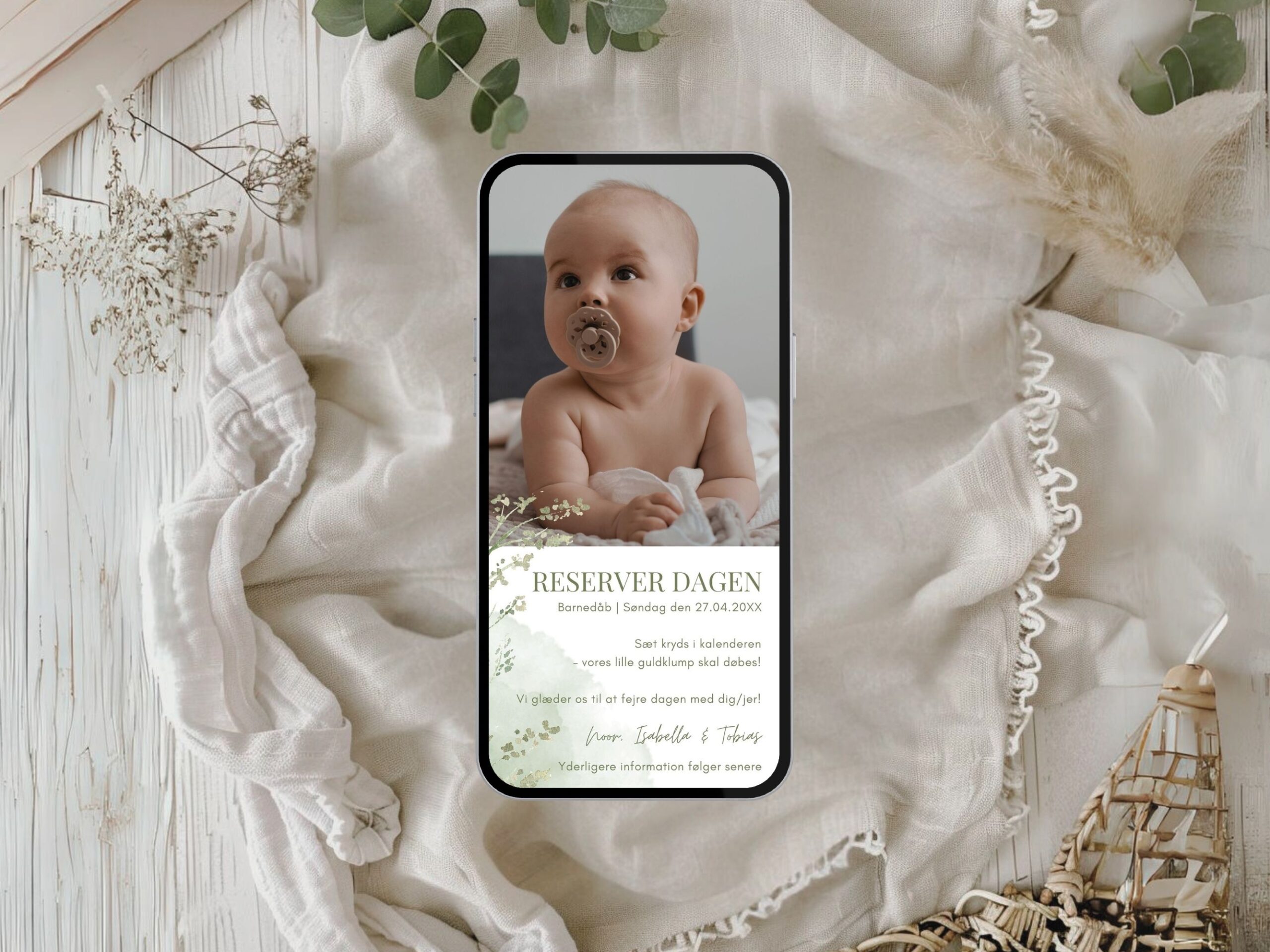 Digital save the date kort til barnedåb
