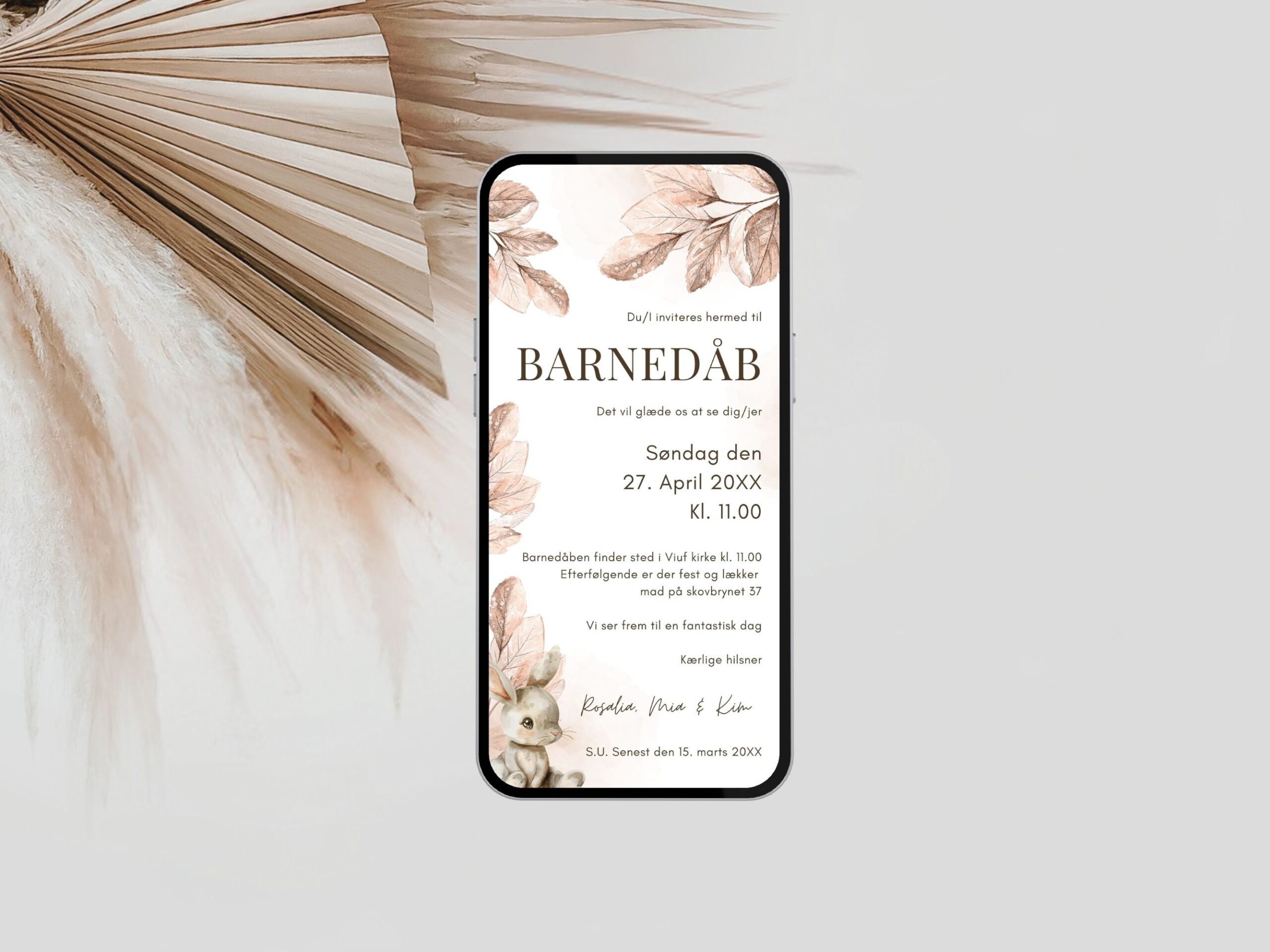 Med vores digital invitationer til barnedåb og navngivningsfest kan du skabe en unik og personlig invitation til jeres store dag – direkte i den gratis version i programmet Canva. Vælg mellem smukke og elegante designs, som du nemt kan redigere med jeres egen tekst, farver og billeder, så invitationen afspejler både jeres stil og festens tema.